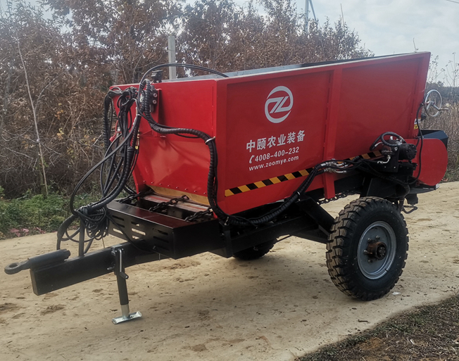 Nursery series wood manure spreader is a special machine specially developed for nursery and other application scenarios after structural adjustment and functional adjustment on the basis of fertilizer spreader according to the agronomic requirements of nursery enterprises for multiple times of spreading wood manure on the seedling bed. This series of models adopts a front oriented discharging structure, an auxiliary blanking mechanism and a high clearance design.