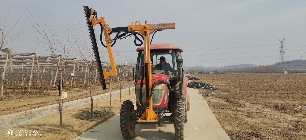 FE1D01-02 pruning machine is a mechanized pruning equipment developed by Zoomye Company according to the unified preliminary pruning of branches between rows in winter, summer and autumn in modern wide row and dense planting orchards. The whole machine is fully hydraulically driven and controlled, with simple operation and high trimming efficiency! The trimmer is installed at the front of the tractor. The operator can flexibly adjust the trim height, trim angle and side extension width of the trimmer through the electric control or manual control of the hydraulic valve. It is easy and convenient to work!